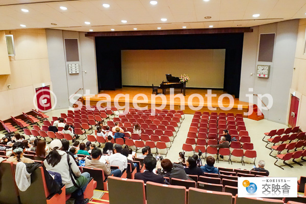 撮影場所は二階席を使用しました。客席でいえば17列目ですが、通路がゆったりと確保されているのでステージまで距離がありました。望遠レンズでかなり寄らないと、演奏者のアップ写真は撮れません。